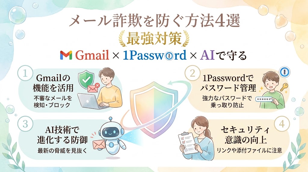 【あなたの資産が一瞬で奪われる理由】メール詐欺を防ぐ方法4選|Gmail×1Password×AIで守る最強対策
