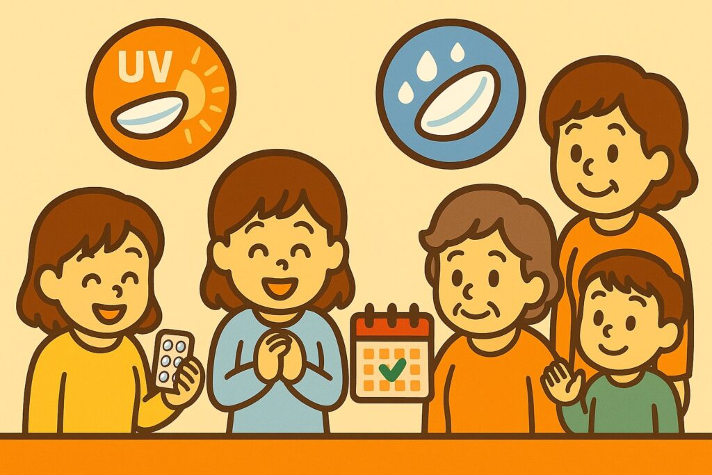 - UVカット機能で紫外線から目を守る(白内障や角膜ダメージを防ぐ効果あり【日本眼科学会】)