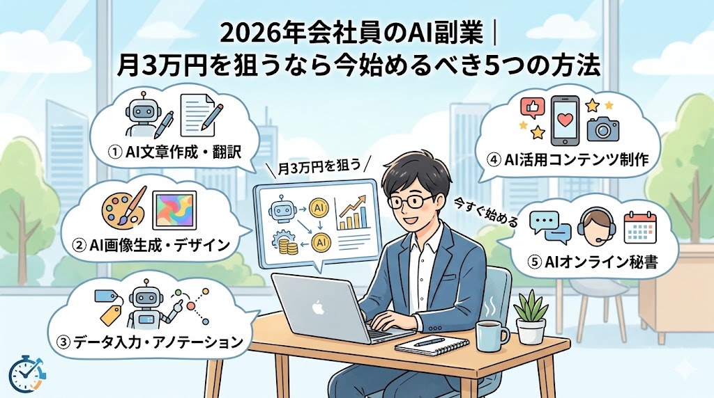 2026年会社員のAI副業|月3万円を狙うなら今始めるべき5つの方法