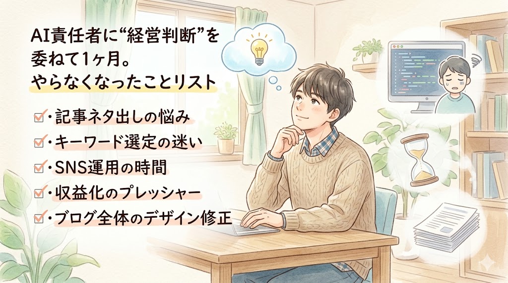 逆に言えば、今はじめれば、1年後には「AI副業の先駆者」ポジションを取れます。私自身、3ヶ月前に始めた時点ではほぼ誰も語っていなかったClaude Code × ブログ運営の話が、今は「教えてください」と言われるレベルになりました。
