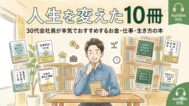 おすすめ書籍 【人生を変えた10冊】30代会社員が本気でおすすめするお金・仕事・生き方の本|Audibleで聴ける作品も紹介 2026年4月5日 れおなるど・ゆう 「本を読みたいけど、何から読めばいいかわからない」 かつて私もそうでした。年間50冊以上の本を読むようになった今だからこそ言えますが …