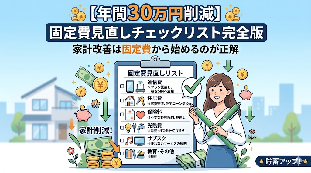 【年間30万円削減】固定費見直しチェックリスト完全版|家計改善は固定費から始めるのが正解